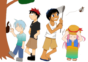 こんな感じの、ぎゃーぎゃーわいわいした妄想夏休み話描いてますー。
