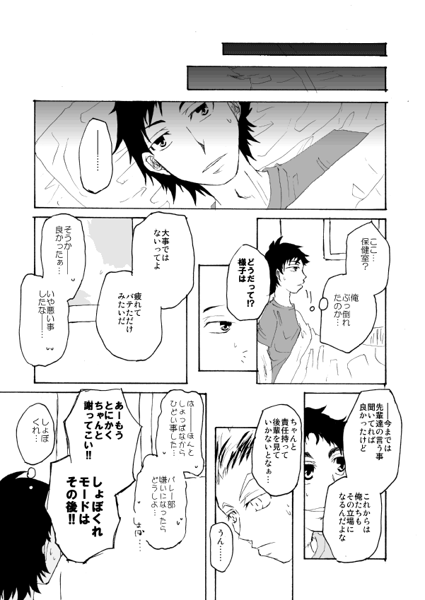 ●20151011:自家通販始めました。こちらからどうぞー。 無事脱稿しましたった!やった! という訳で、イベント参加と新刊サンプル告知に参りました-。 2/1のハイキュー梟谷オンリー「ヘイヘイヘーイ!梟大集合!!」にサークル参加致します。いまだにこのイベント名打ってるだけでこっ恥ずかしくなる。 スペースはR09「気楽極楽」、友人達との合同サークルですー。 <新刊> 『二年木兎と一年赤葦』 A5オンデマンド16p ¥100 二年生木兎さんと一年生赤葦君の出逢いを好き勝手妄想捏造した漫画です。 早速破天荒な木兎さんのノリに巻き込まれながらも、すごいものを持っている人なんじゃないかと赤葦君がぼんやり気付いて一目置くような話。 以下本文サンプルですー。画像は全て、クリックすると大きいサイズで見られます。 薄い本にしたって超薄型最軽量なペラ本になってまいました。うう。しかし描きたい要素は詰め込みましたのでそこは満足です。 どうぞよろしくお願い致します-。 今週のハイキュー良い話だった…。狂犬ちゃんも、他のみんなと同じくバレーボールが好きで仲間を大切に思っていたい真っ直ぐな気持ちの持ち主なのね。 こういうの見せられちゃうと、益々勝敗がつくのが苦しくなりますわぁ…。ふううつらいけどしっかり見届けよう。 |